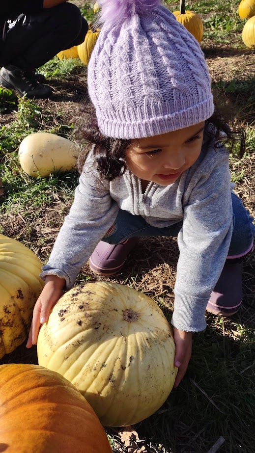 Thought you might like this image of my niece at her first pumkin patch in Richmond BC, Unceded Coast Salish Territories! 'Tis the season as I write this!